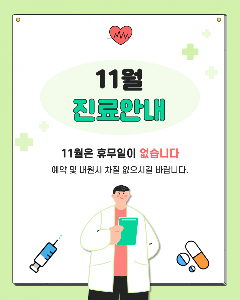 내원하실 때 참고하시어 진료에 차질 없으시길 바랍니다.